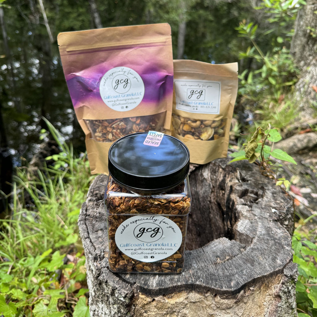 Gulfcoast Granola LLC was founded in early 2023 by Susan Pauer, an avid outdoorswoman who recognized the need for a sustainable, high-energy snack when out on the water or on the mountain trail.